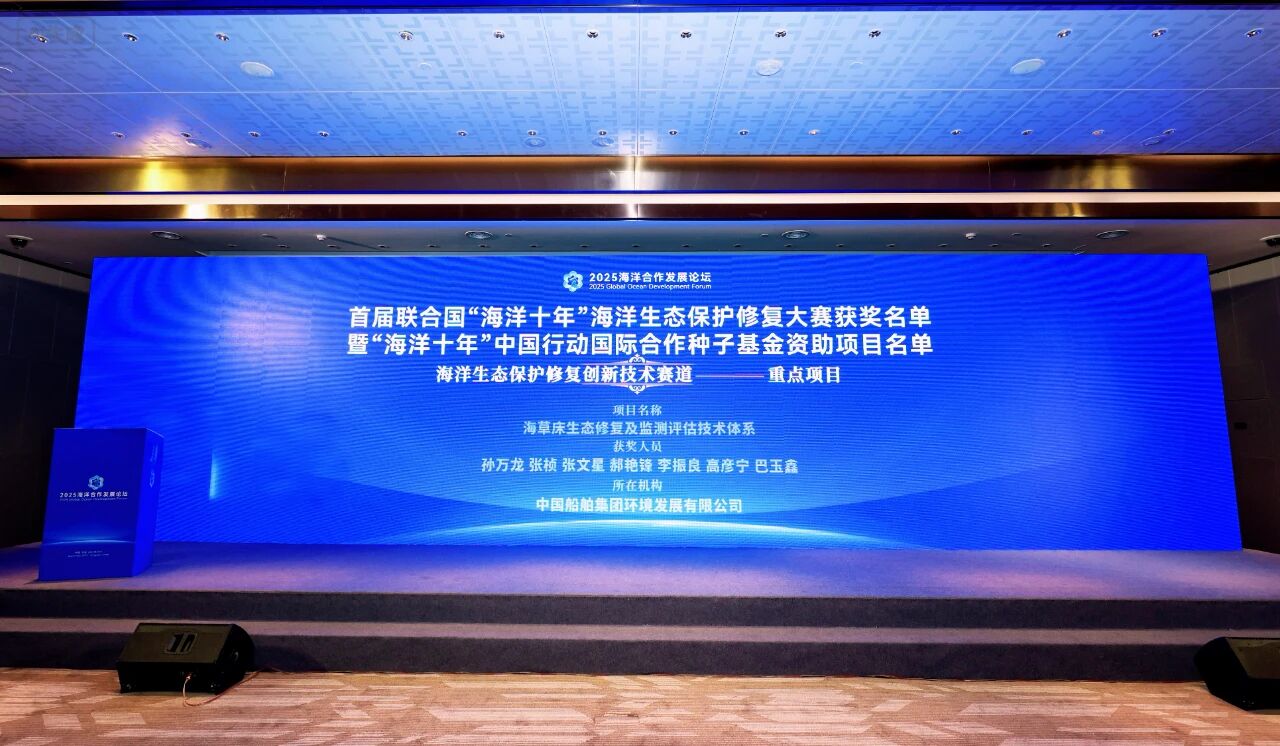 近日,中國船舶集團環(huán)境發(fā)展有限公司(以下簡稱“中船環(huán)境”)自主研發(fā)的《海草床生態(tài)修復及監(jiān)測評估技術(shù)體系》項目,在首屆聯(lián)合國“海洋十年”海洋生態(tài)保護修復大賽中脫穎而出,榮獲“海洋十年”中國行動國際合作種子基金資助重點項目。中船環(huán)境也是唯一獨立自主完成海洋生態(tài)保護修復創(chuàng)新技術(shù)項目的企業(yè)代表。