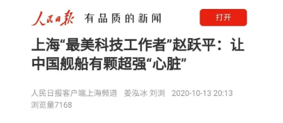 ????中國船舶集團七〇四所首席專家趙躍平,獲評2020年上海地區(qū)“最美科技工作者”。