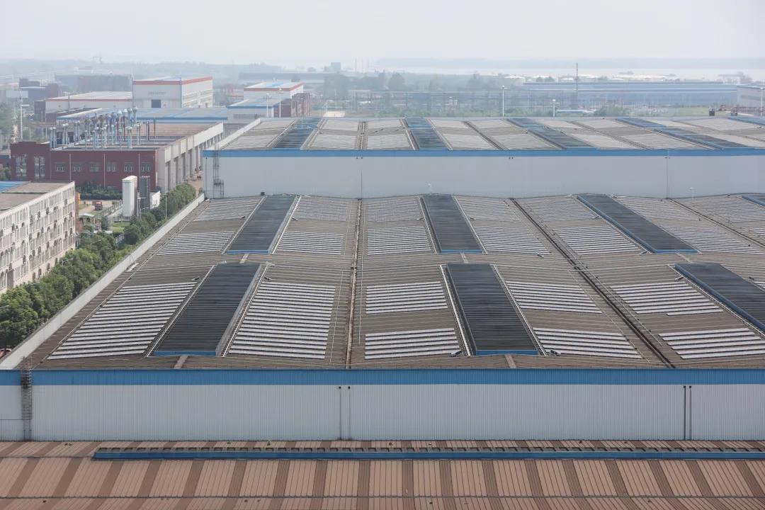 2018年初,武船集團雙柳基地光伏電站通過國家電網公司驗收,正式并網發電成功。自2018年1月起至2021年6月雙柳基地光伏發電總量達995.6萬千瓦時,年均發電284.5萬千瓦時,減少電費開支365萬余元,有效降低了企業電費成本的同時減少了溫室氣體的排放,為我國節能減排目標的實現貢獻了船舶人的力量。