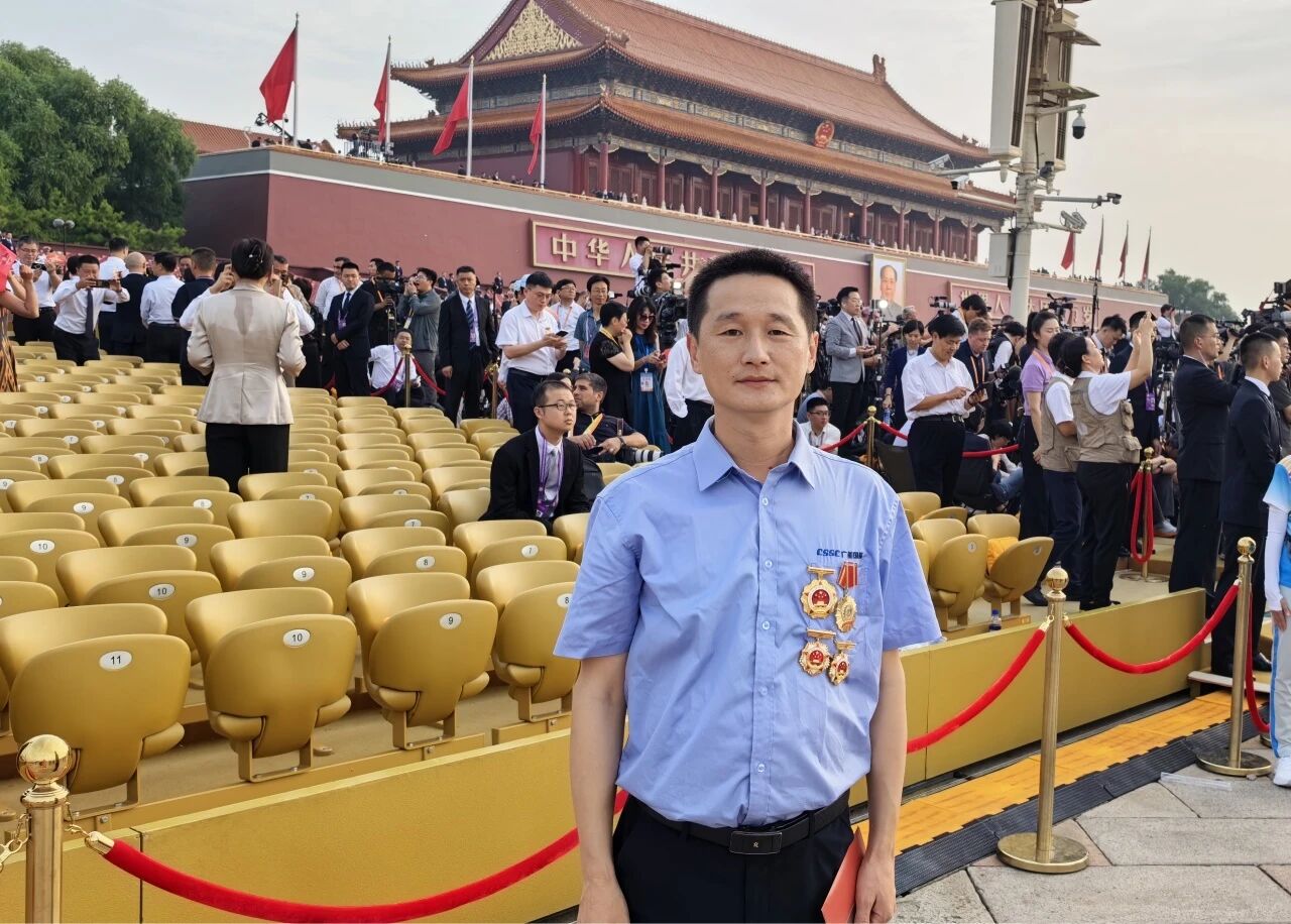 當雄壯的《義勇軍進行曲》奏響,五星紅旗冉冉升起,我情不自禁地起身肅立,與現(xiàn)場所有群眾代表一同高唱國歌。這一刻,跨越時空的民族記憶被瞬間激活,80年前先輩們?yōu)槊褡宕嫱鲈⊙獖^戰(zhàn)的壯闊畫卷仿佛在眼前重現(xiàn)。在閱兵分列式中看到了我們中船集團研制的8型整裝裝備震撼出場,接受黨和人民的檢閱,倍感榮光,背后是我們中船人的不懈努力和創(chuàng)新精神。